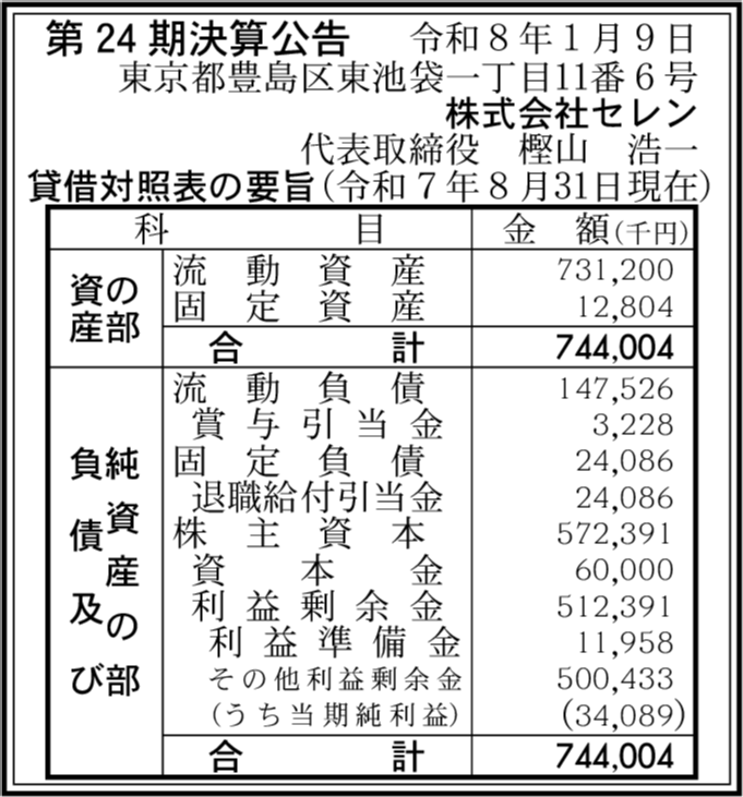 株式会社東京計画 東京都豊島区 【2025年8月期】 |