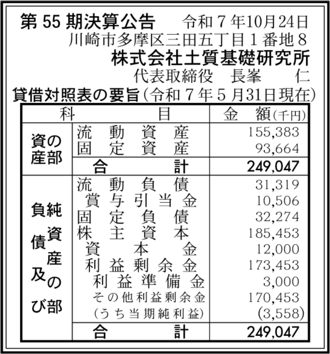 | 利益剰余金 | 1億7,345万3,000円 (+2.09%) |