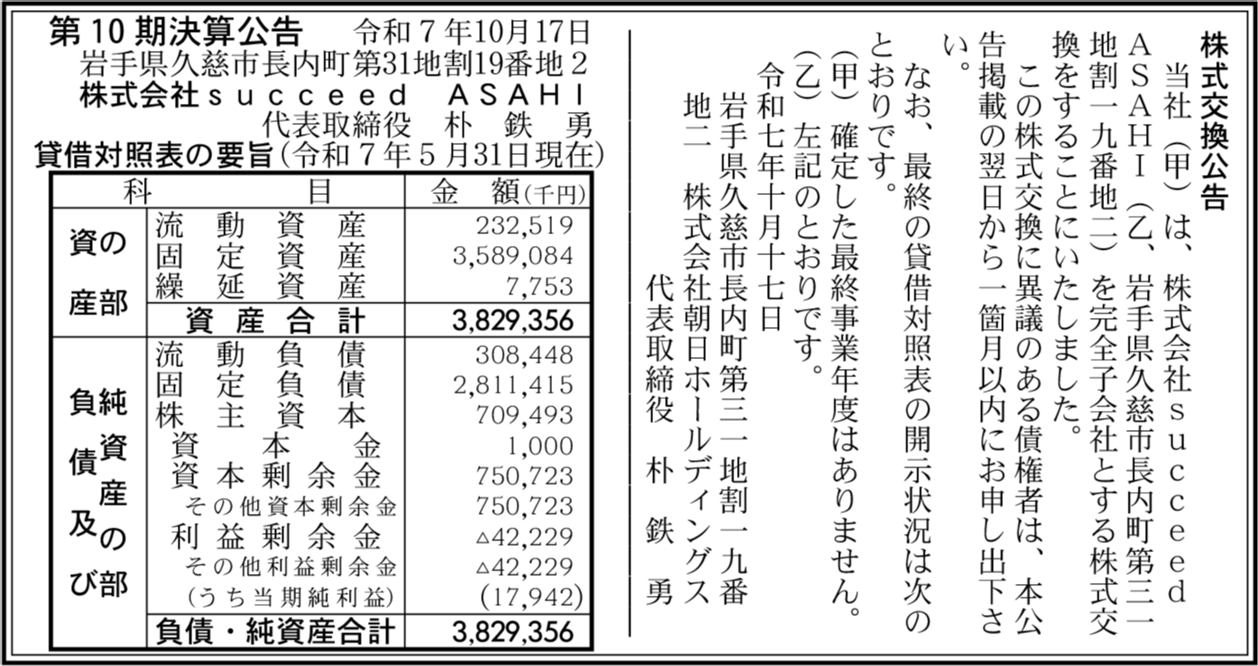 会社名 | 株式会社succeed ASAHI |