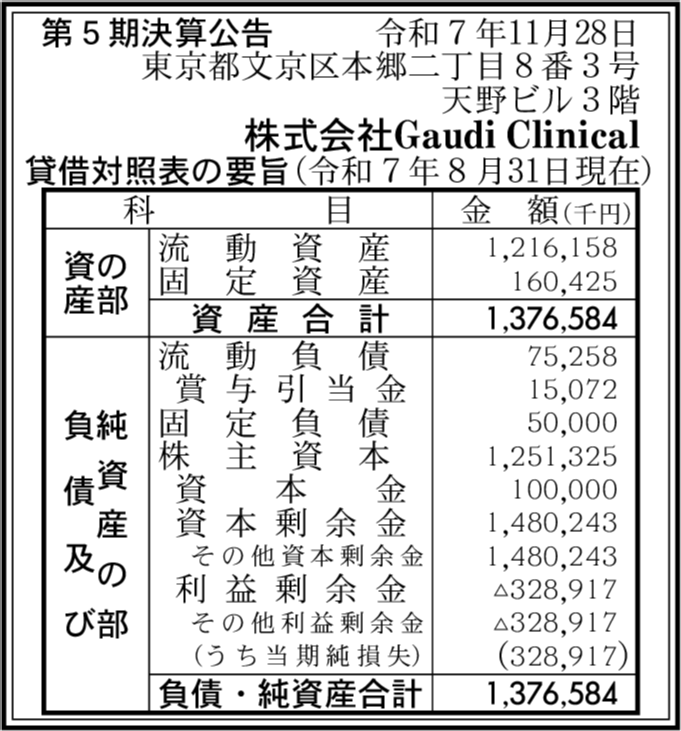| 会社名 | 株式会社Gaudi Clinical |