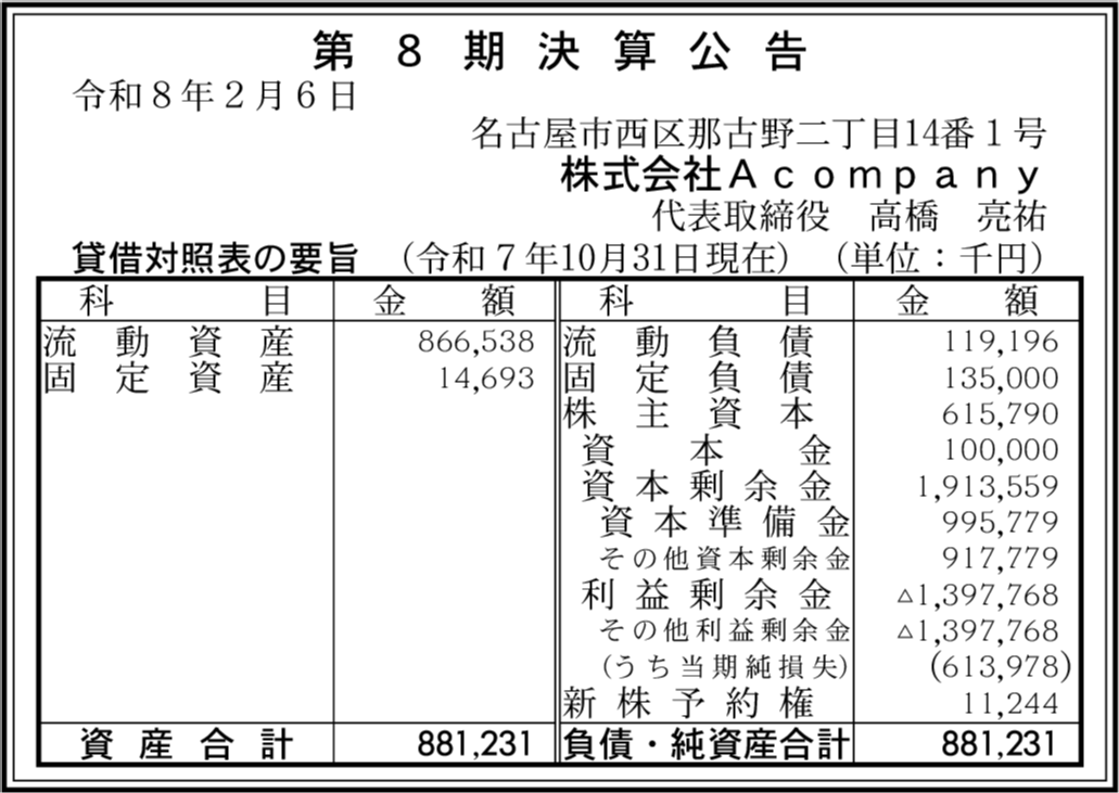 | 会社名 | 株式会社Acompany |