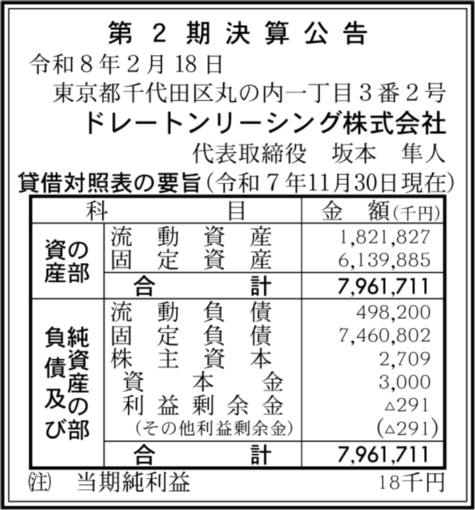 | 会社名 | ドレートンリーシング株式会社 |