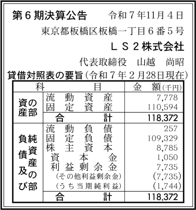 LS株式会社 東京都板橋区 【2025年7月期】 |