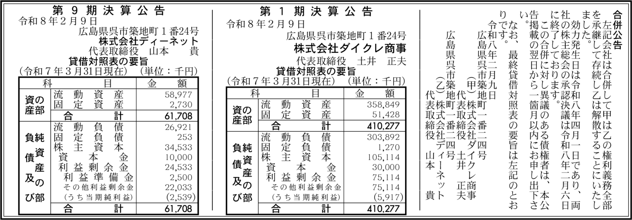 株式会社ダイクレ商事 広島県呉市 【2025年3月期】 |