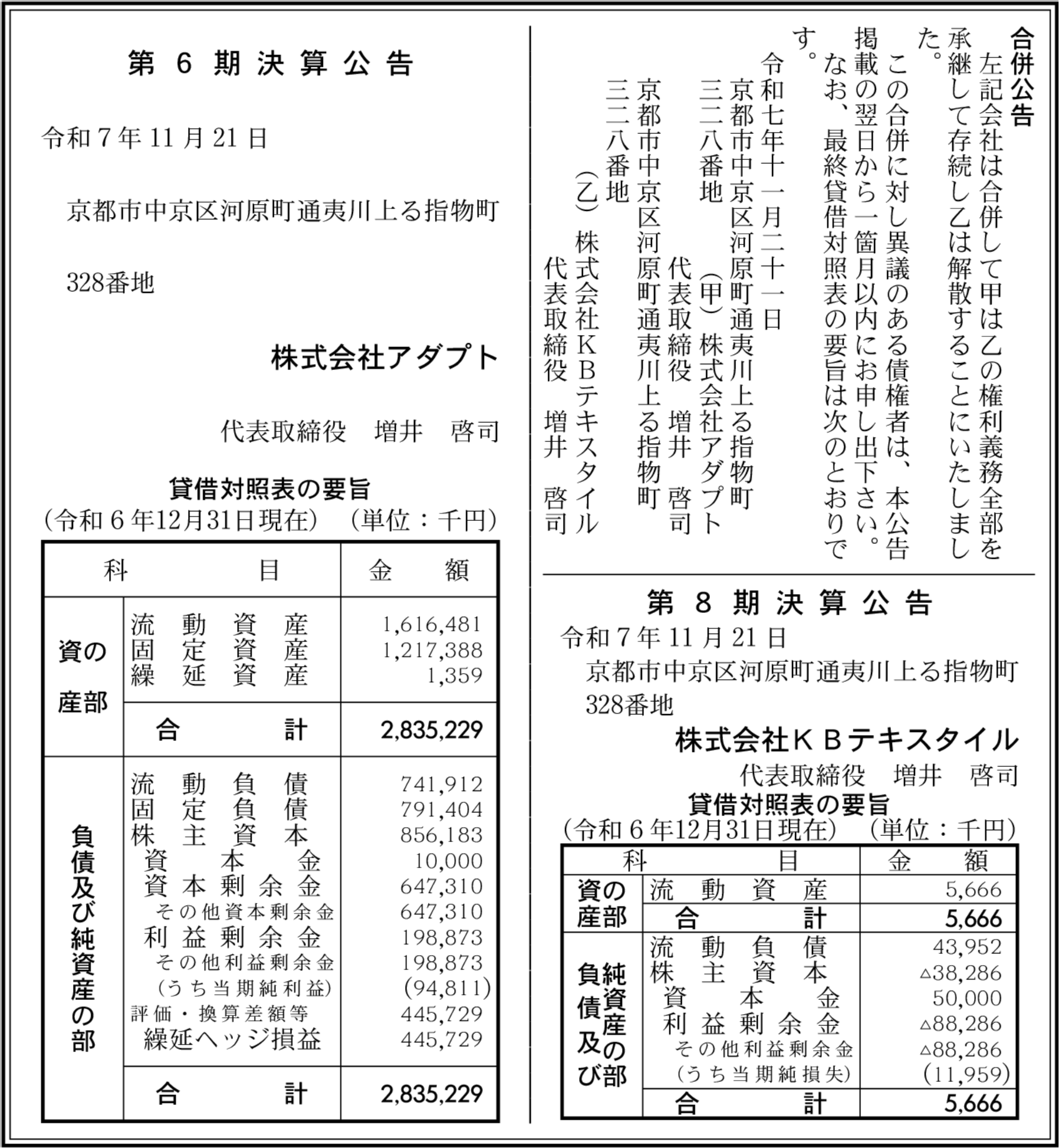 株式会社KBテキスタイル 京都市中京区 【2024年12月期】 |