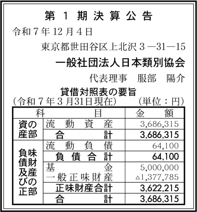 | 会社名 | 一般社団法人日本類別協会 |
