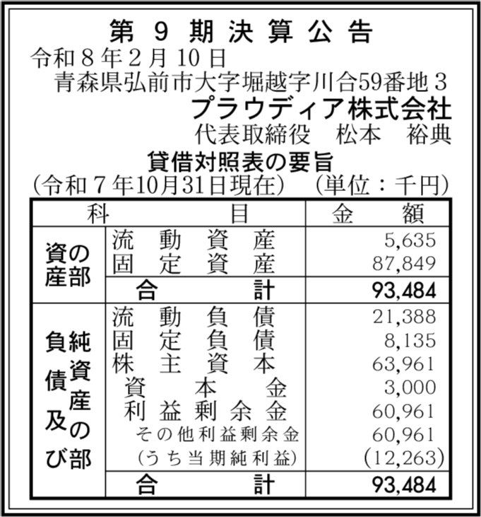 | 会社名 | プラウディア株式会社 |