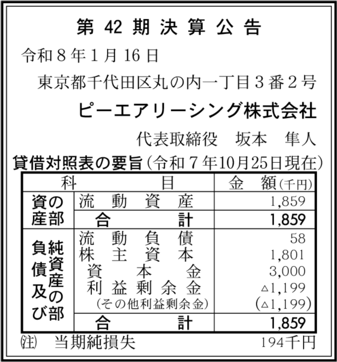 | 純利益 | ▲19万4,000円 (赤字縮小) |