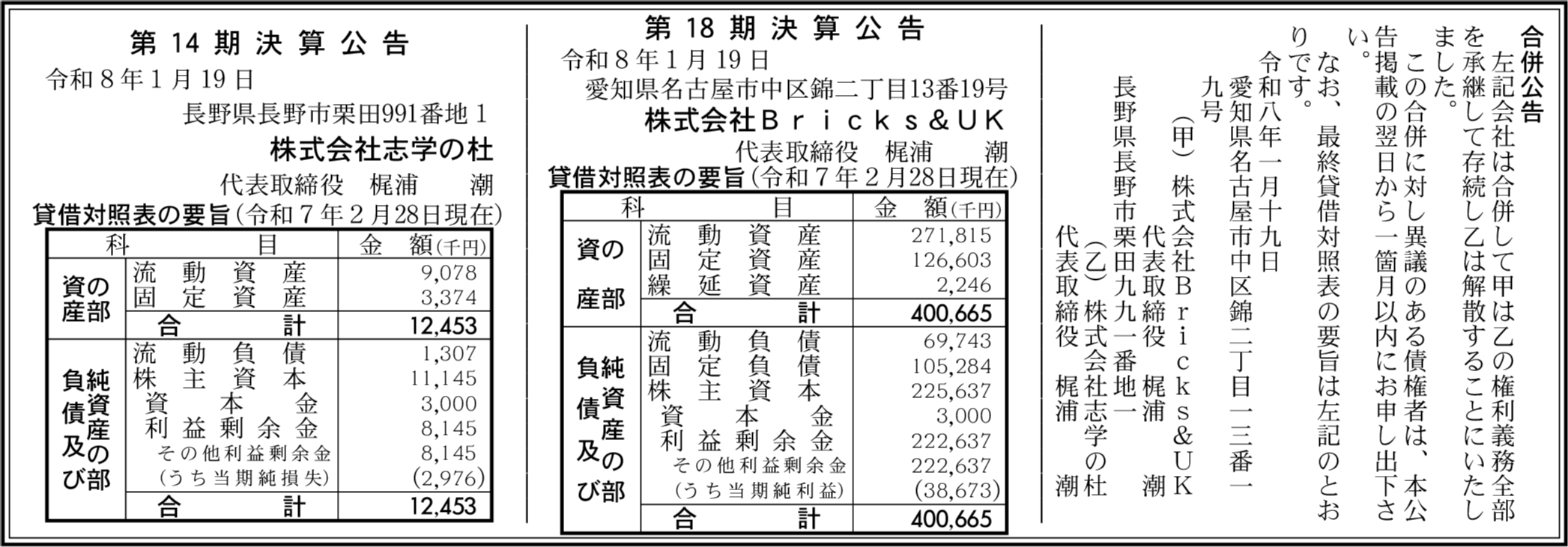 株式会社Bricks&UK 愛知県名古屋市中区 【2025年2月期】 |