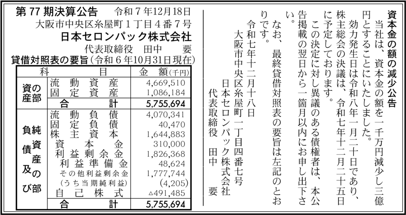 | 会社名 | 日本セロンパック株式会社 |