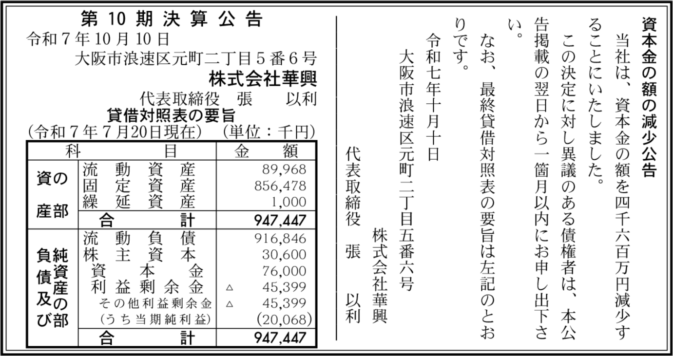 会社名 | 株式会社華興 |