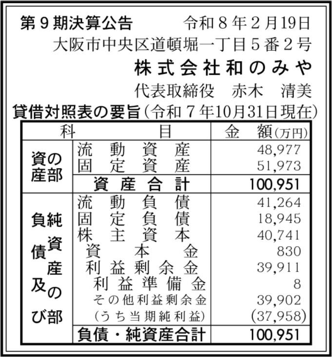 | 利益剰余金 | 3億9,911万円 (+1944.62%) |