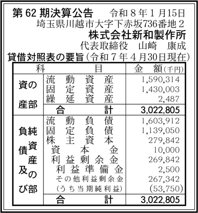 | 会社名 | 株式会社新和製作所 |