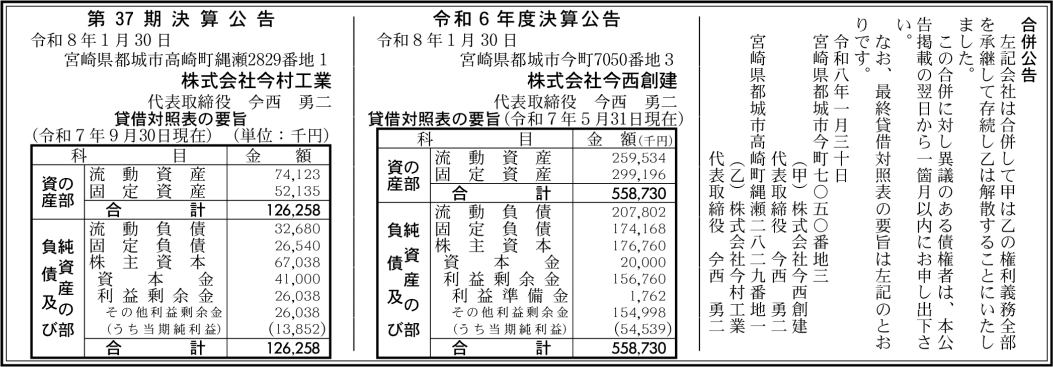 株式会社今村工業 宮崎県都城市 【2025年9月期】 |