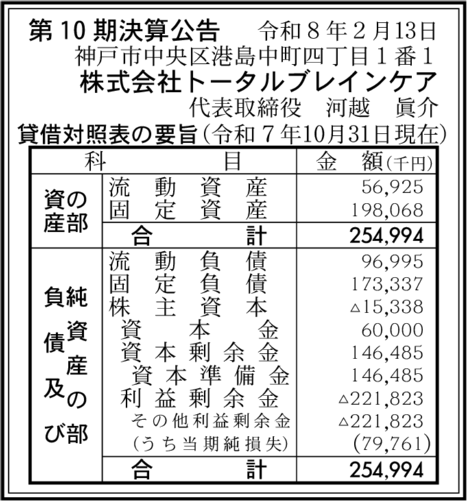 | 会社名 | 株式会社トータルブレインケア |