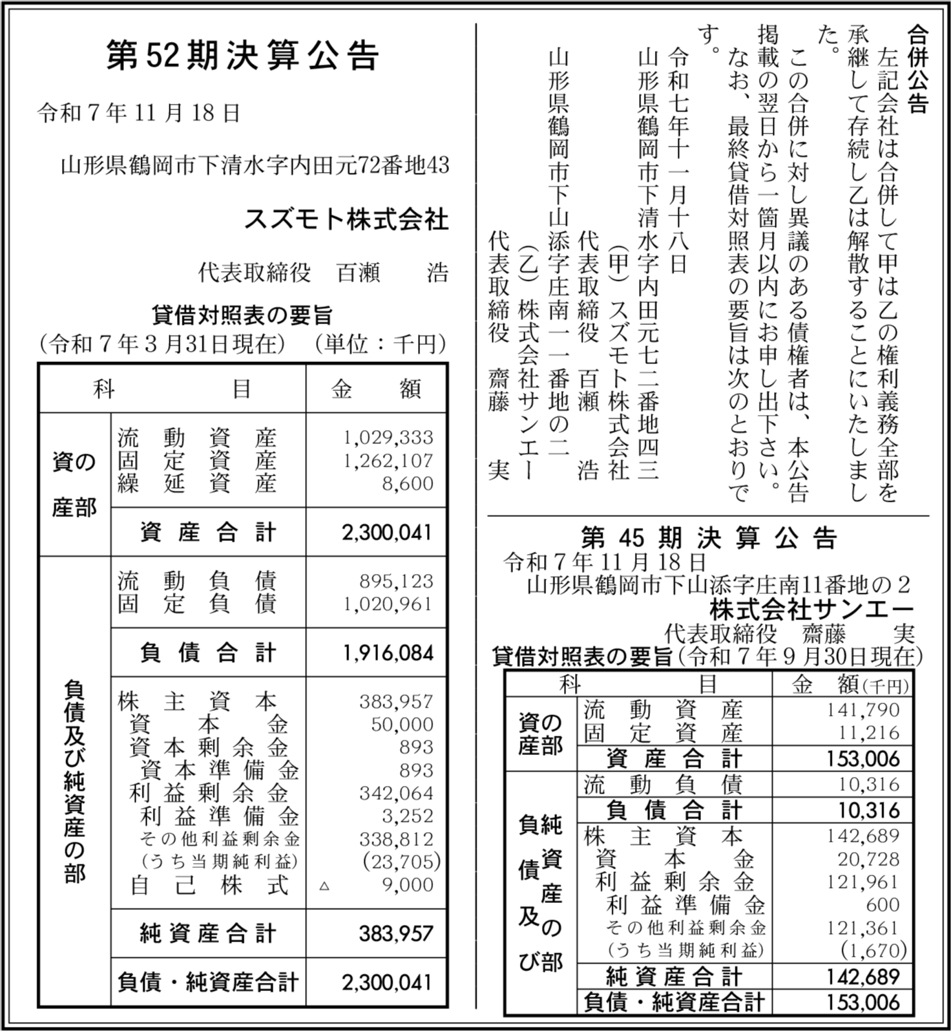 株式会社サンエー 山形県鶴岡市 【2025年9月期】 |