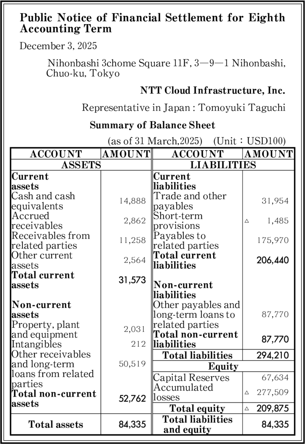 | 会社名 | NTT Cloud Infrastructure, Inc. |