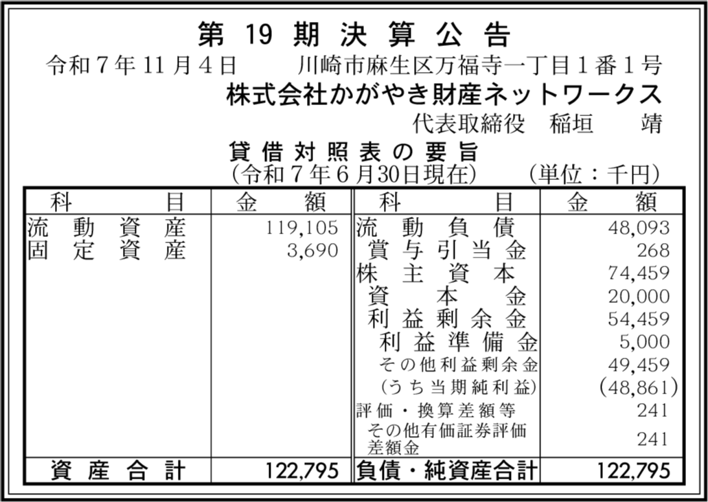 | 会社名 | 株式会社かがやき財産ネットワークス |
