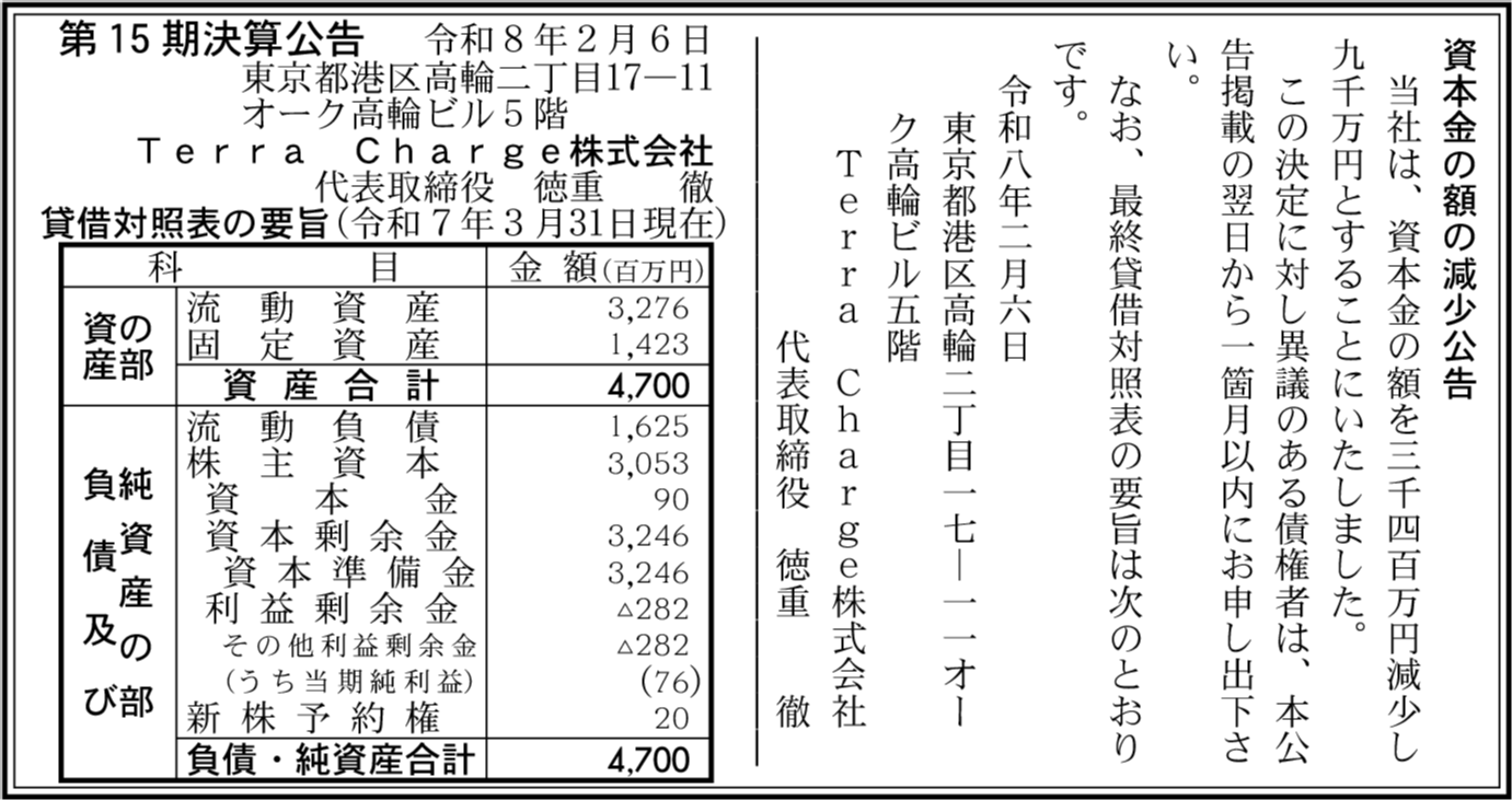 | 会社名 | Terra Charge株式会社 |