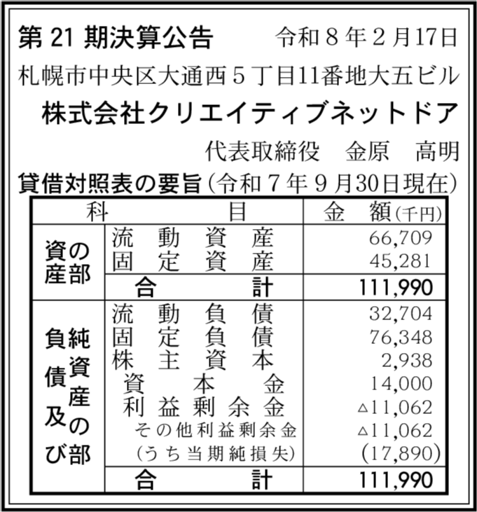 | 会社名 | 株式会社クリエイティブネットドア |