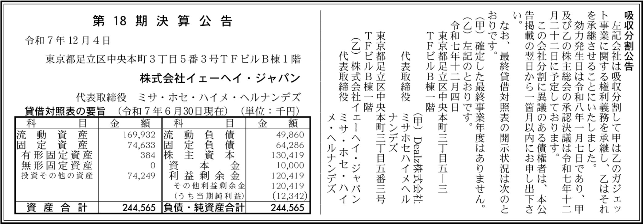 | 会社名 | 株式会社イェーヘイ・ジャパン |