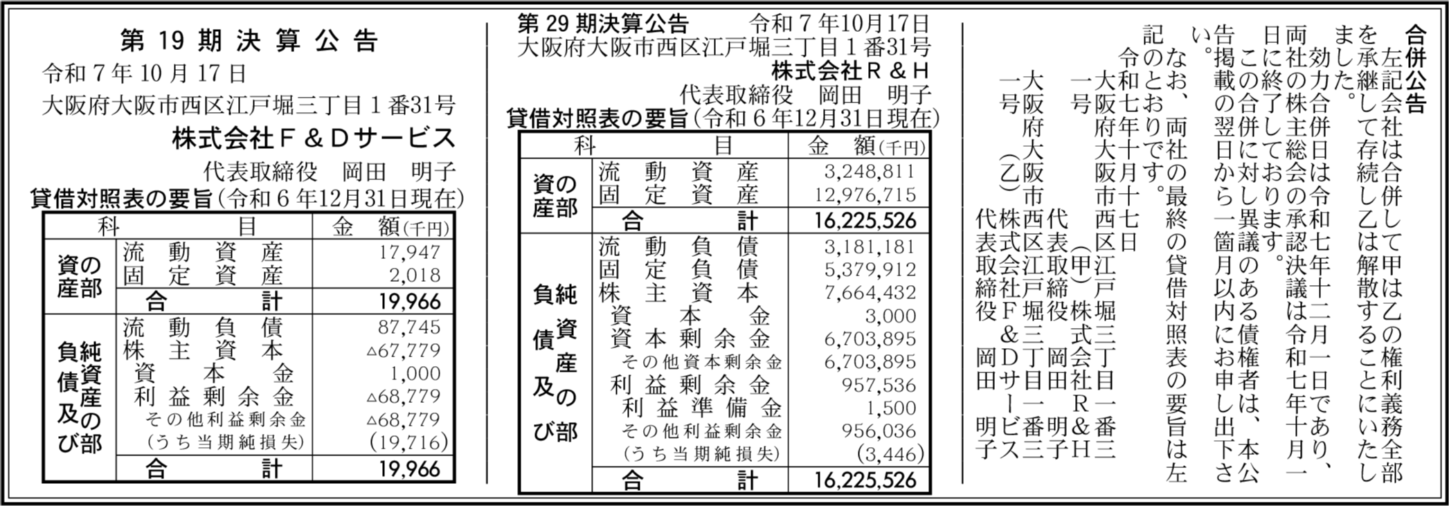 株式会社F&Dサービス 大阪府大阪市西区 【2024年12月期】 |