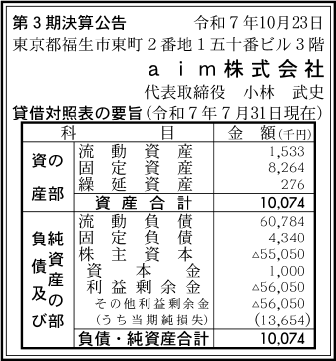 | 利益剰余金 | △5,605万円 (赤字拡大) |