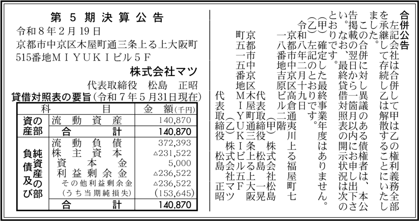 ケーエムジー興産株式会社 京都市中京区 【2025年7月期】 |