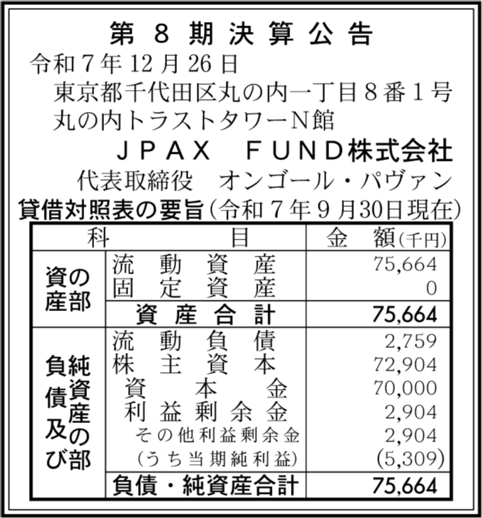 株式会社サプル 東京都千代田区 【2025年9月期】 |