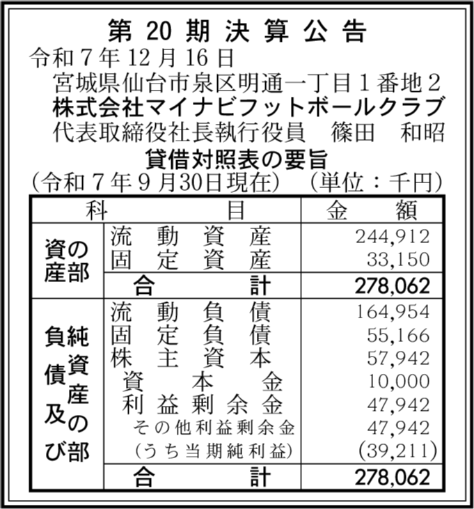 | 会社名 | 株式会社マイナビフットボールクラブ |