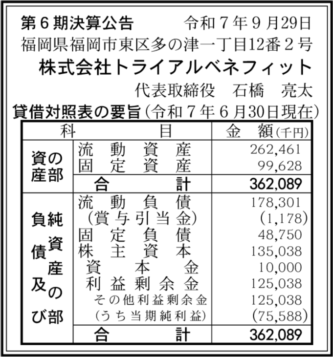 株式会社トライアルリアルエステート 福岡県福岡市東区 【2025年6月期】 |