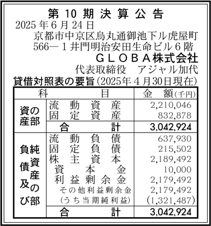 会社名 | GLOBA株式会社 |
