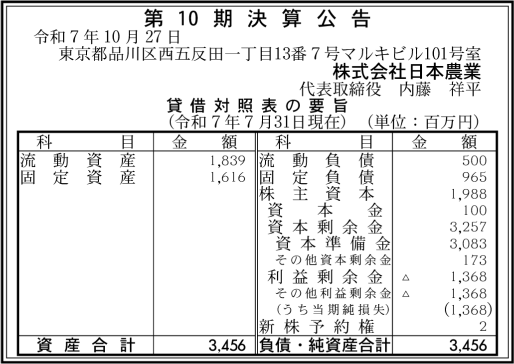 株式会社日本農業土木 東京都品川区 【2025年7月期】 |