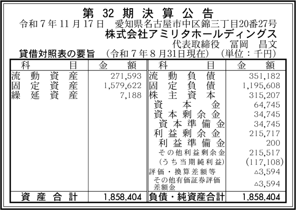 | 利益剰余金 | 2億1,571万7,000円 (+69.99%) |