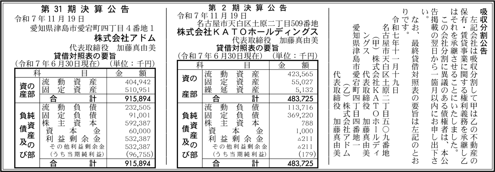 株式会社KATOホールディングス 名古屋市天白区 【2025年6月期】 |