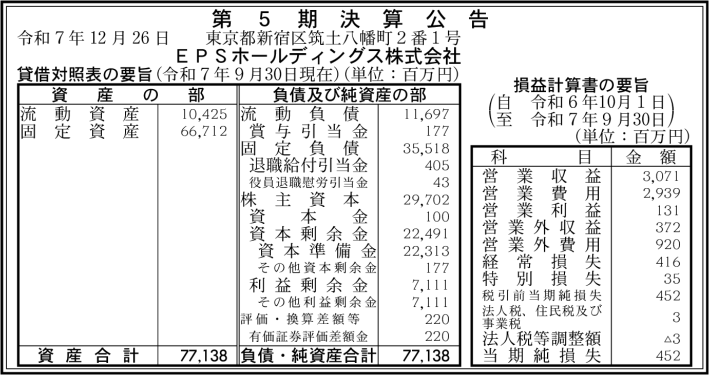 EPSデジタルシェア株式会社 東京都新宿区 【2025年9月期】 |