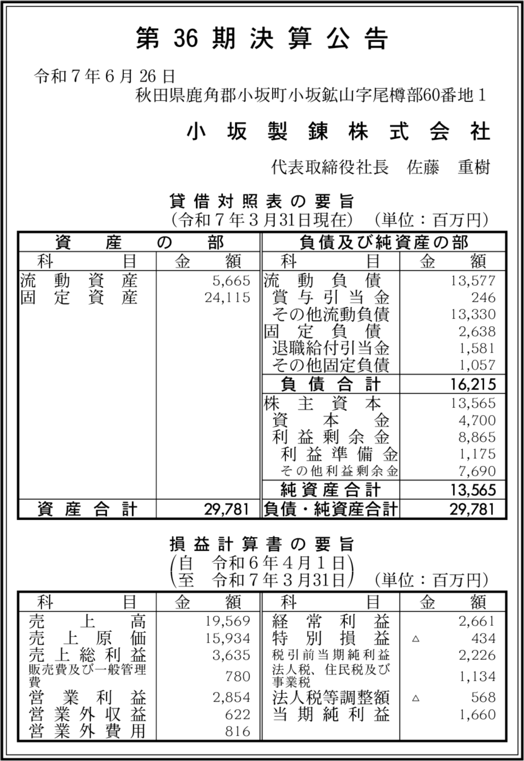 エコシステム小坂株式会社 秋田県鹿角郡小坂町 【2025年3月期】 |