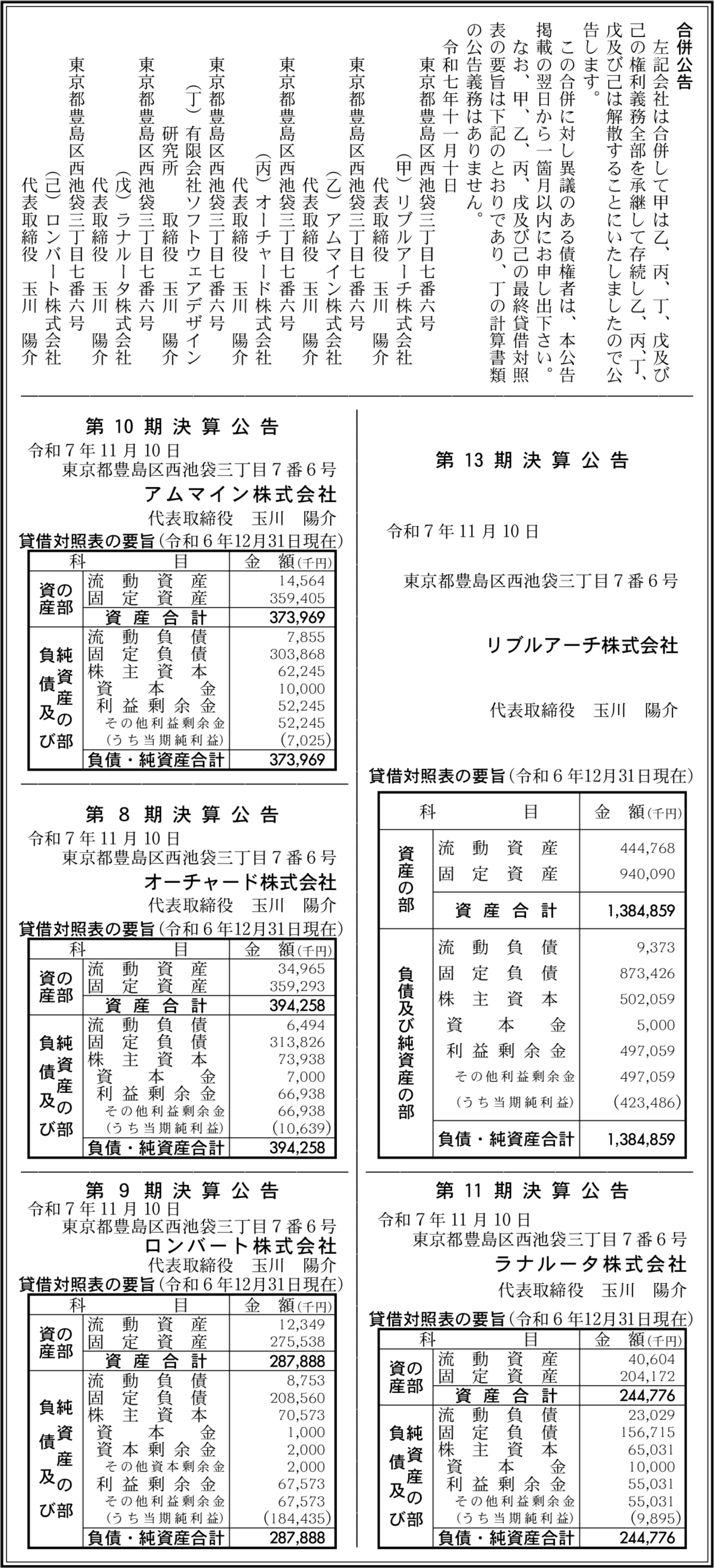 ラナルータ株式会社 東京都豊島区 【2024年12月期】 |