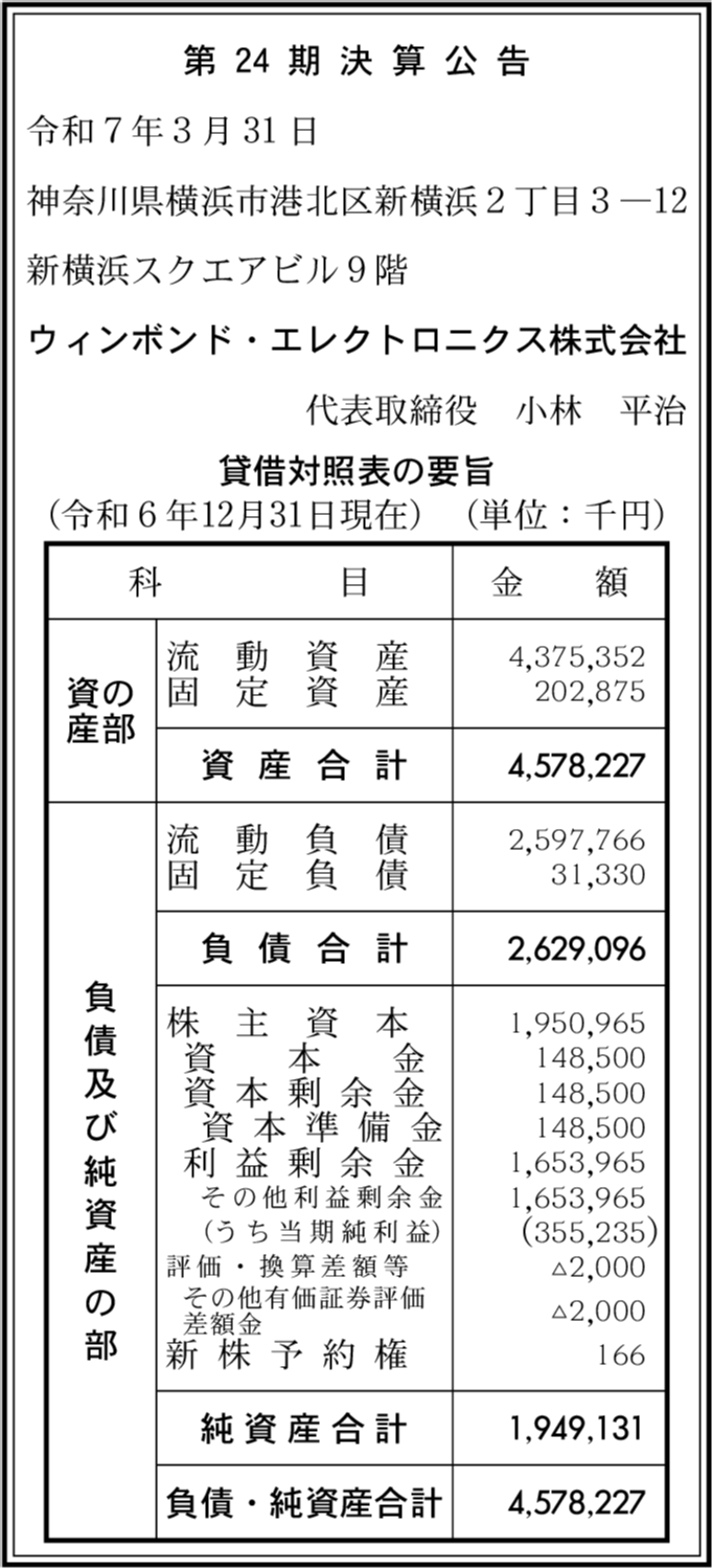 | 会社名 | ウィンボンド・エレクトロニクス株式会社 |