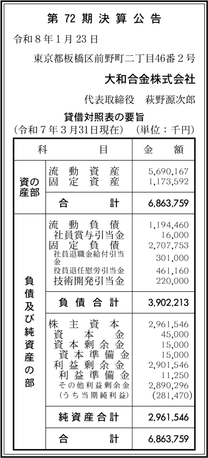 株式会社有我工業所 東京都板橋区 【2025年10月期】 |