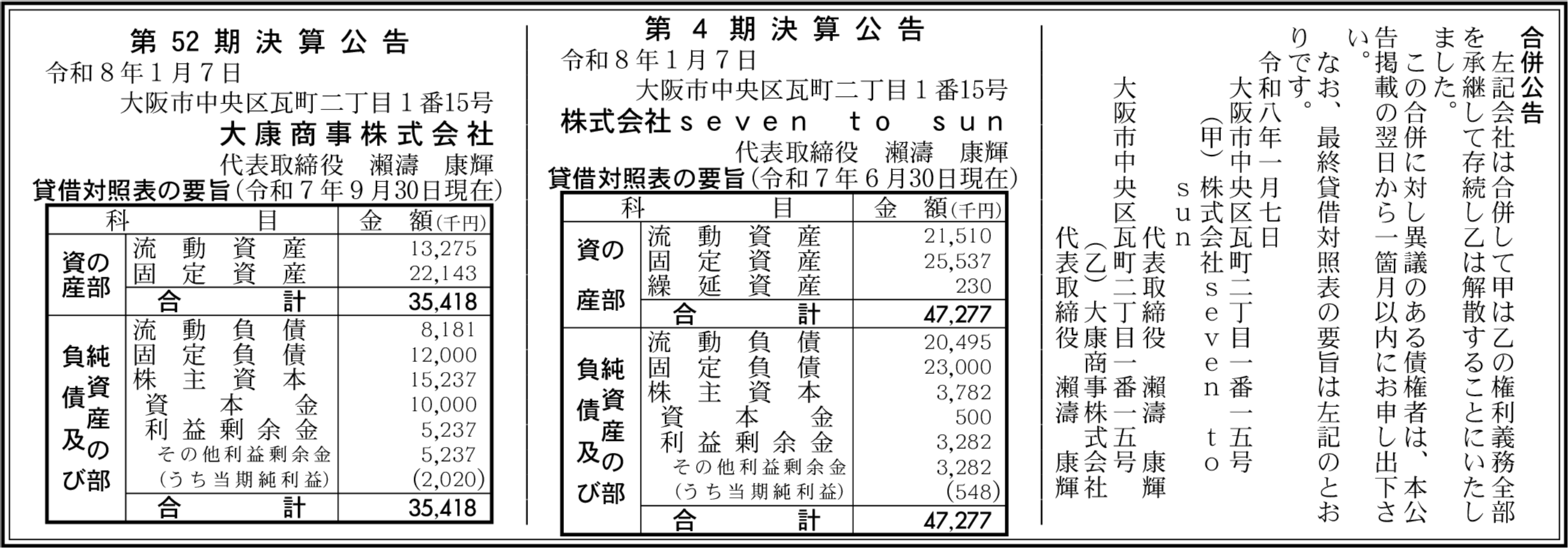 株式会社seven tо sun 大阪市中央区 【2025年6月期】 |