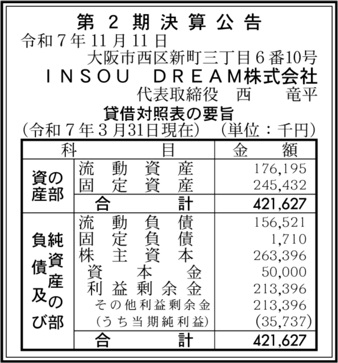 INSOU West株式会社 大阪市西区 【2025年3月期】 |