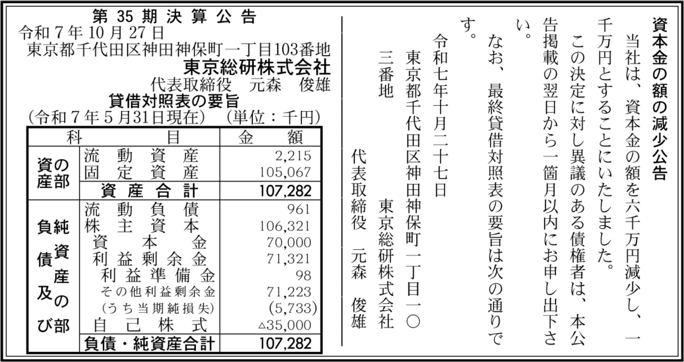 | 会社名 | 東京総研株式会社 |
