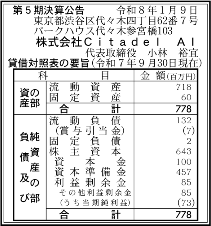 | 総資産 | 7億7,800万円 (+20.43%) |