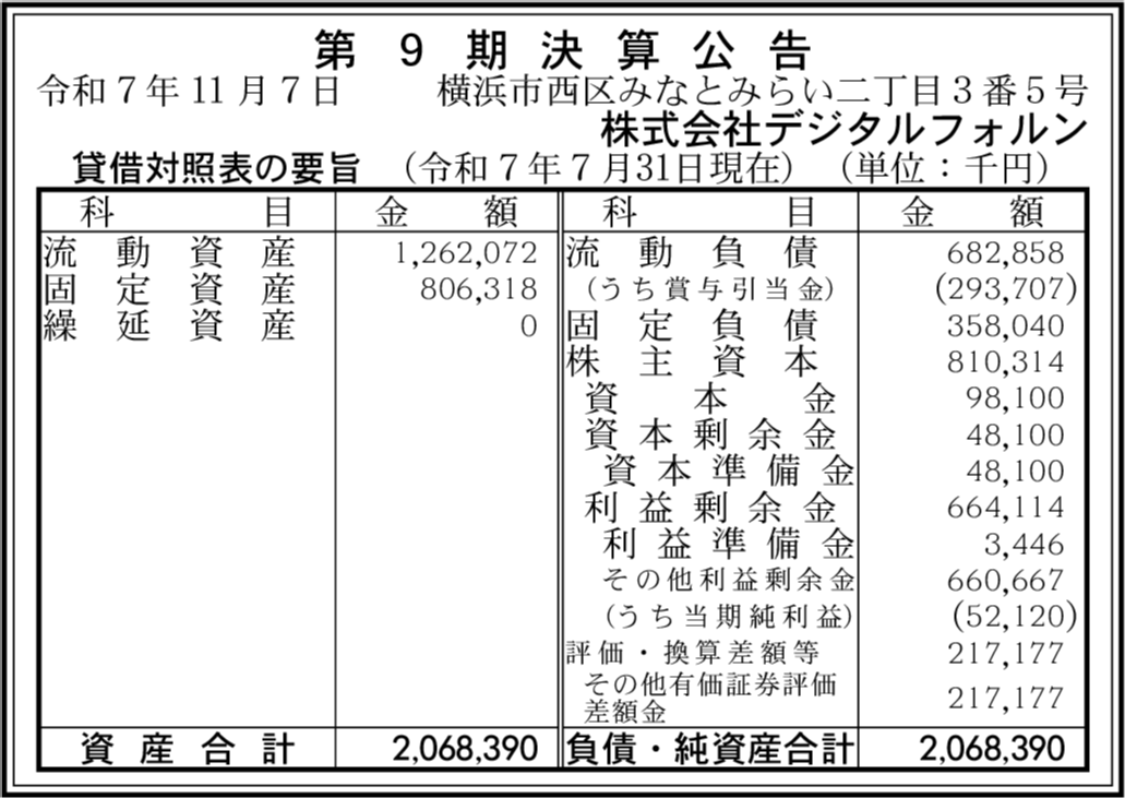 | 総資産 | 20億6,839万円 (+8.24%) |
