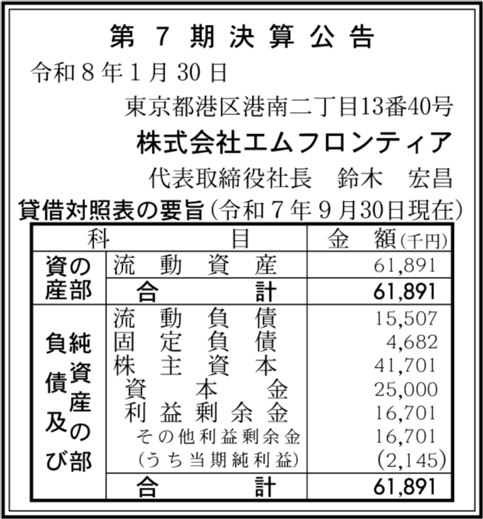 | 会社名 | 株式会社エムフロンティア |