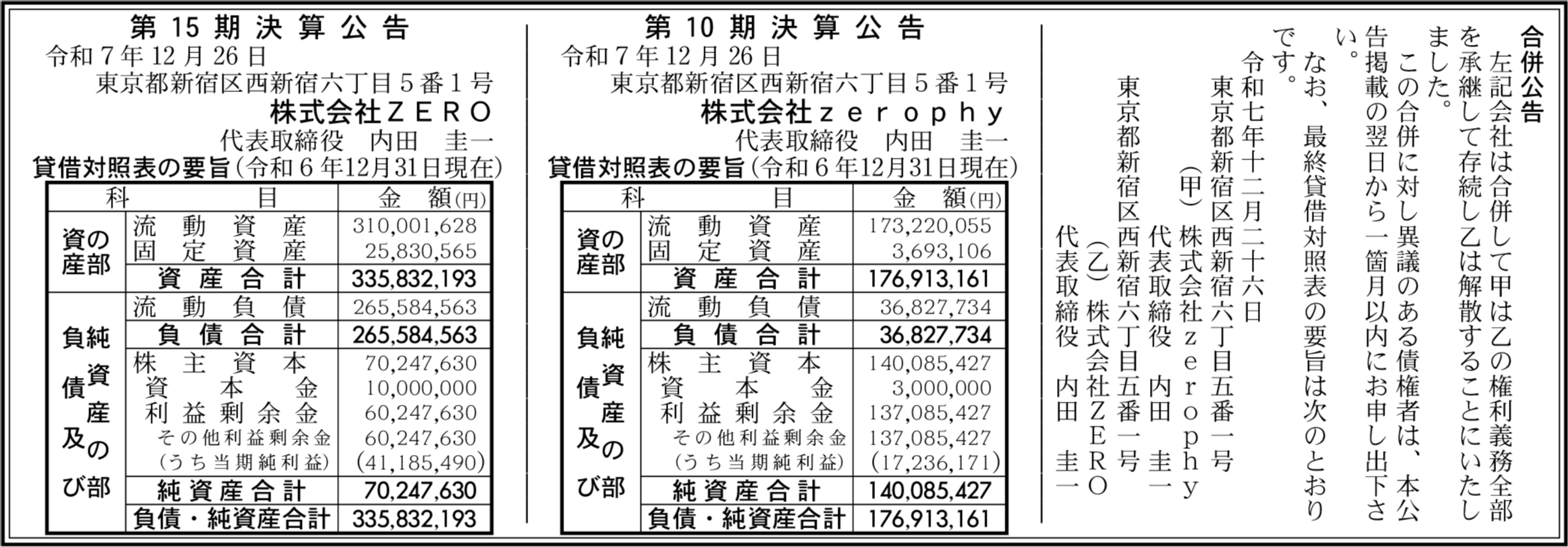 株式会社zerophy 東京都新宿区 【2024年12月期】 |