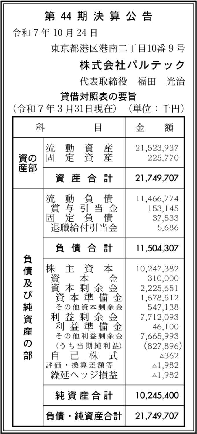 株式会社パルテック 東京都港区 |