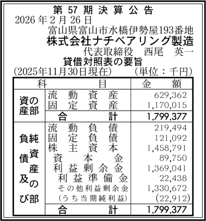 株式会社ナチツールエンジニアリング 富山県富山市 【2025年11月期】 |
