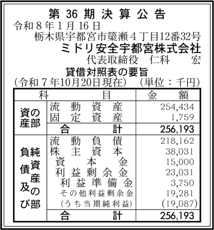 ミドリ安全栃南株式会社 栃木県小山市 【2025年4月期】 |
